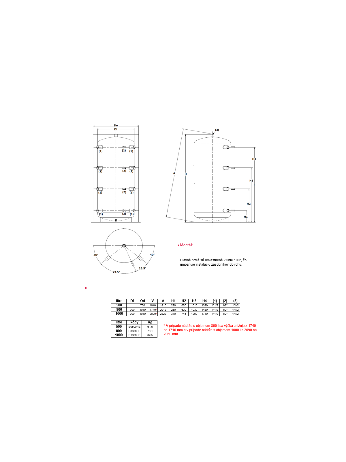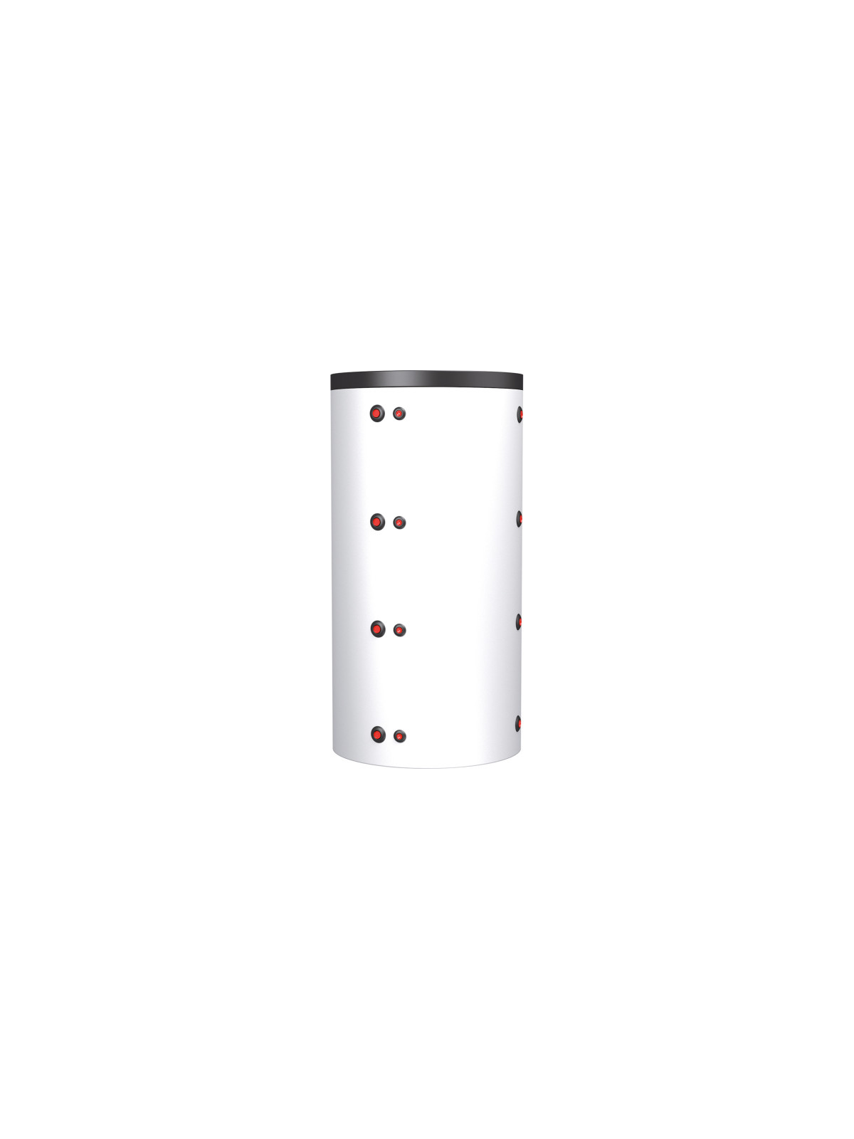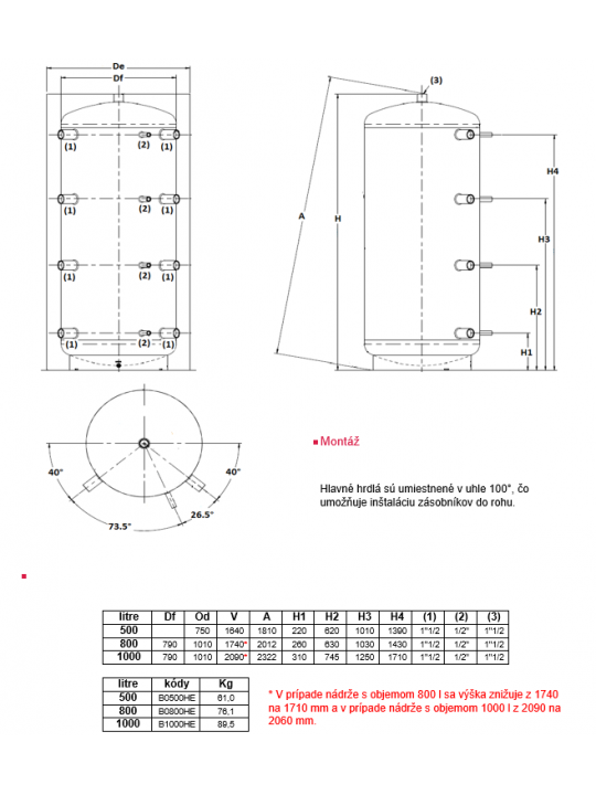 Přípojky: 4×2 hlavní hrdla, 4 přípojky pro sondy a teploměry, hrdla jsou osazena v úhlu 100° – nádrž lze instalovat i do rohu.