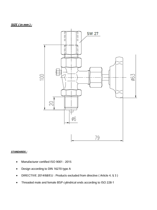 • Hengeres végek belső és külső BSP menettel az ISO 228-1 szabvány szerint
