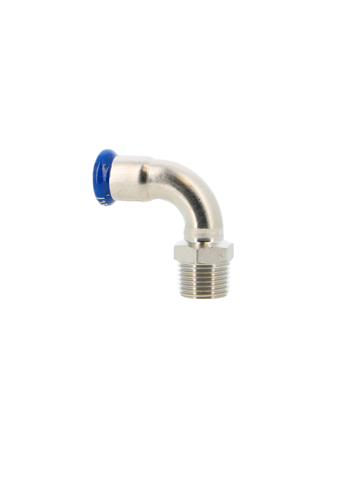 PBtub - INOX préselt 90°-os könyök külső G" menettel (csatlakozás típusa M)