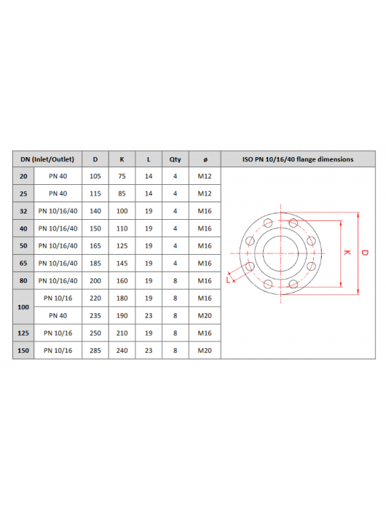Karimás csatlakozás a bemeneten PN40, a kimeneten PN10/16