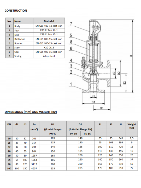 Öntöttvas karimás biztonsági szelep PN40 |