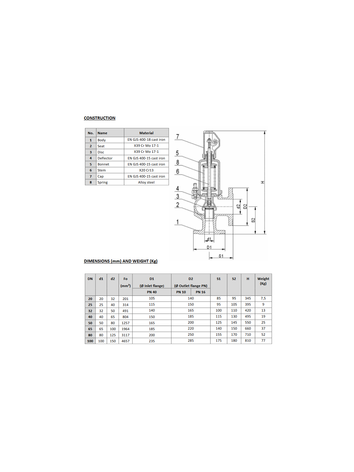Biztonsági szelep : DN 50 / 80 |