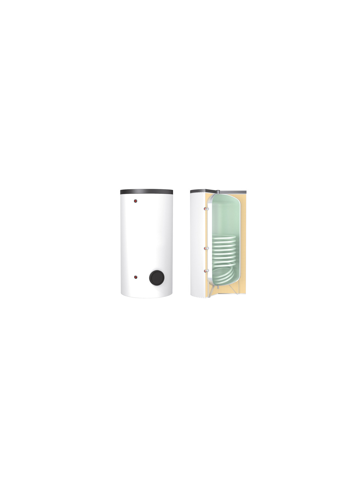 Készítés: Polywarm® felületkezelésű acél, poliuretán hab (500 l-ig) vagy poliészter szál (800 l-től) szigeteléssel.